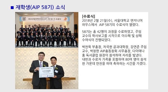기 간 : 2017. 09. 06 - 2018. 02. 21 ( AIP 58기 )